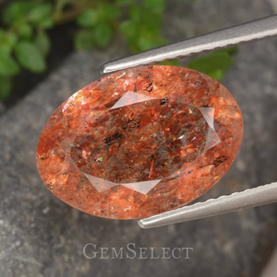 Stones that can appear similar to strawberry quartz are sunstone because of the spangled inclusions, though sunstone is more golden than red. Rather than quartz, sunstone is a kind of feldspar; the same gemstone group as moonstone, labradorite, andesine, amazonite and orthoclase. As well as faceted sunstone, we have a collection of star sunstone gems, which show four-rayed stars in addition to the glittery effect.