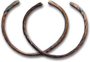 Bronze has continued to be used as a jewelry material from the Bronze Age, right through the Iron Age and up to the present day. Evidence of this has been provided by archeological sites, such as Banja e Pejës in Kosovo and an octagonal Byzantine bronze ring unearthed in Israel. Copper, bronze and brass jewelry seems to be undergoing something of a revival nowadays. This applies to both Celtic or Viking tribal style and high jewelry designs. Some gemstones are particularly suited to the warm golden color of bronze metal. For example, contrasting colors, such as turquoise, azurite and green sapphire are attractive when set in bronze jewelry. On the other hand, pink, rose, amber and champagne colors are brought out by bronze. Modern use of metals has seen the combination of silver, gold and bronze in single items, sometimes entwined or juxtaposed. Bronze is also plated with white gold, yellow gold and other precious metals. Bronze can also be mixed with other materials, such as leather and hemp.
