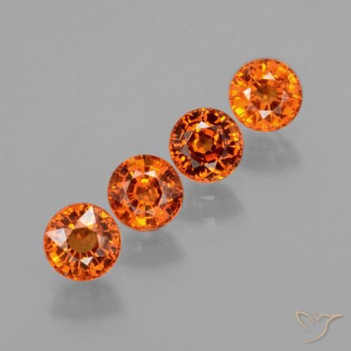 These are 2.51 carat natural amber orange Spessartite Garnet gems, 4 pcs in round shape with an exact size of 4.72 mm x 3.21 mm (avg.). These loose Spessartite Garnet gemstones were mined in Mozambique and their clarity is VS (Eye Clean). No treatment has been applied on these natural Spessartite Garnet stones