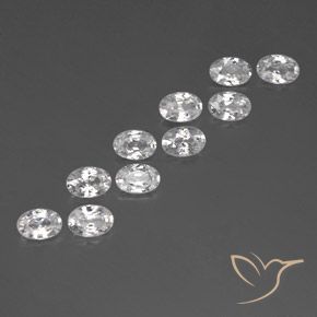 These are 6.86 carat natural white Zircon gems, 10 pcs in oval shape with an exact size of 6.05 x 4.17 x 2.72 mm. These loose Zircon gemstones were mined in Cambodia and their clarity is VVS-VS (Eye Clean). This natural Zircon has been heated to enhance its vivid color.