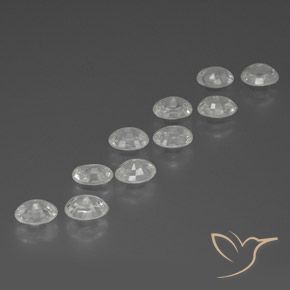 These are 12.89 carat natural white Zircon gems, 10 pcs in oval shape with an exact size of 7.11 x 5.12 x 3.53 mm. These loose Zircon gemstones were mined in Cambodia and their clarity is VS (Eye Clean). This natural Zircon has been heated to enhance its vivid color.
